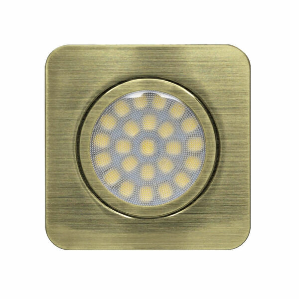 Ultralux мебелна светодиодна луна за вграждане, квадрат, 3W, 4200K, 12V DC, неутрална светлина, SMD2835, IP44, сатиниран месинг