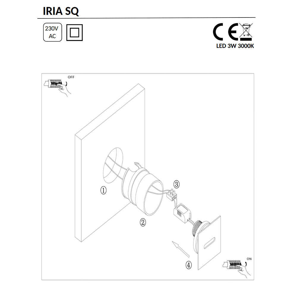 Мини луна за стълбищно осветление 220V, 3W, 390lm, 3000K, 10°, квадратно тяло