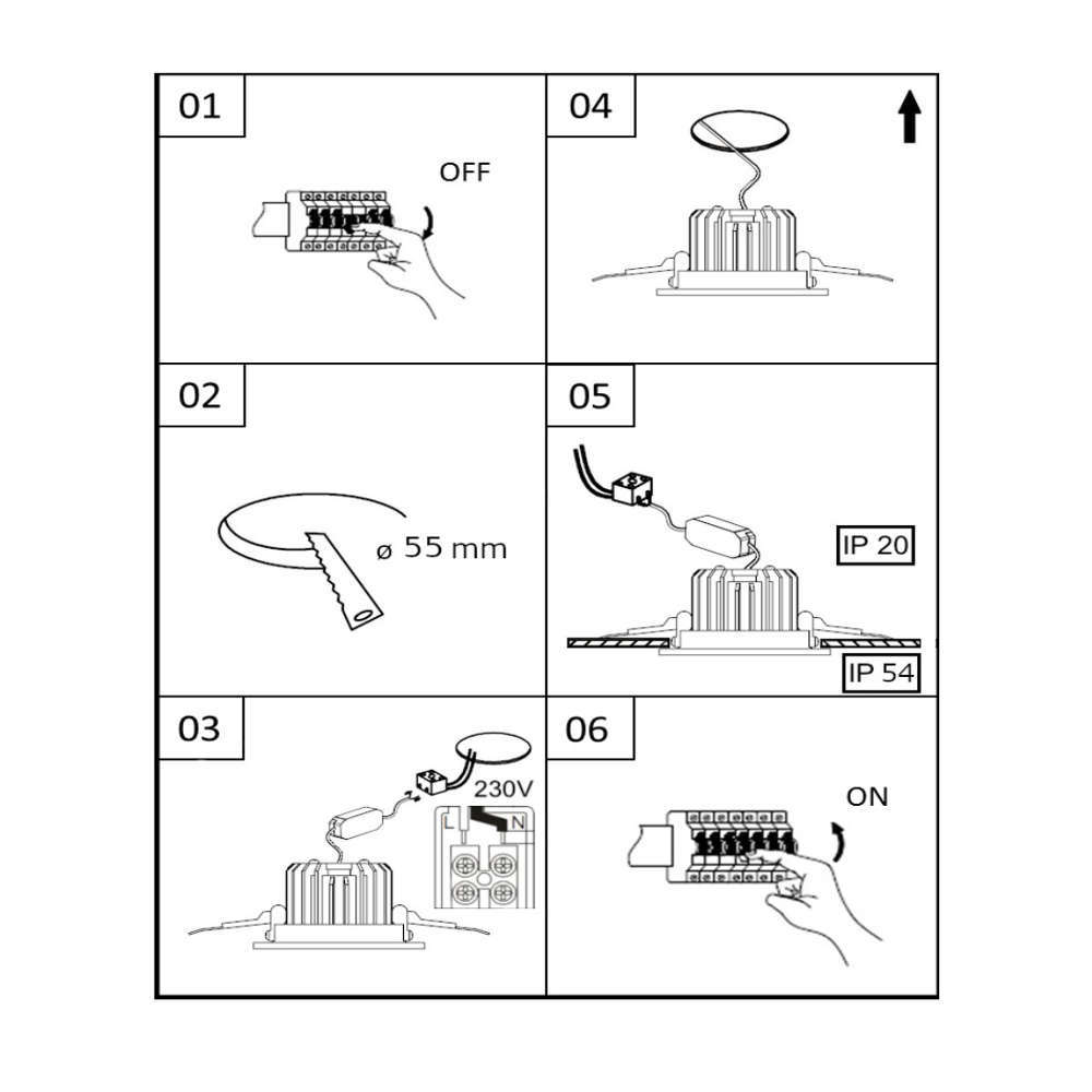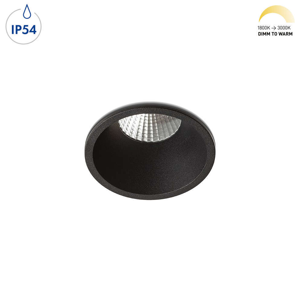 Влагозащитена LED луна за вграден монтаж, 220V, 7W, 520lm, IP54, 45°, Dim to Warm 3000K-1800K, алуминиев корпус и стъкло, черен мат