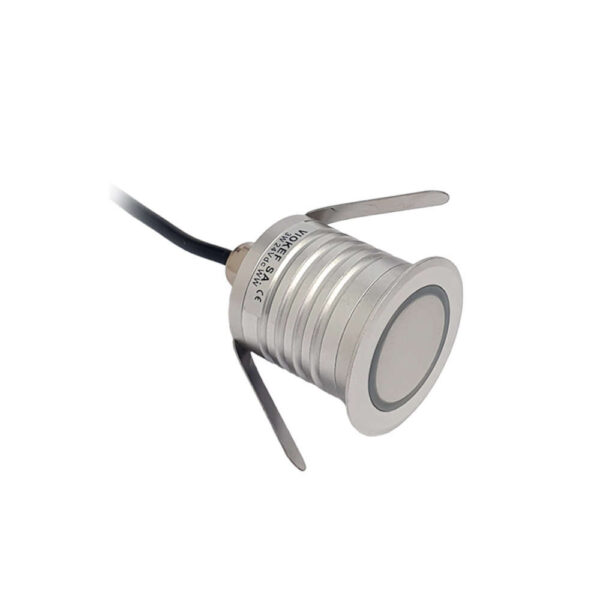 LED луна за вграждане в земя или стени MABEL Viokef 4317900 е влагозащитено мини осветително тяло предназначено дискретно осветяване на тераси, пътеки, стълбища и други. Тази пейзажна LED лампа с ниско напрежение е изработена от алуминий и притежава степен на защита IP67. С мощност от 3W и светлинен поток от 170 лумена, мини луната за вграждане осигурява 3000K топла светлинна цветова температура, която създава уют и спокойствие.
