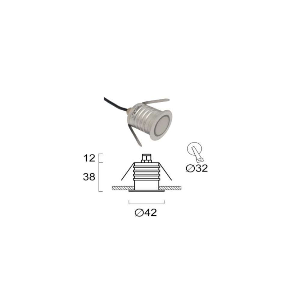 Мини луна за вграждане LED 3W, 12-24VAC-DC, 3000К, 195lm, IP67, CRI80, алуминий