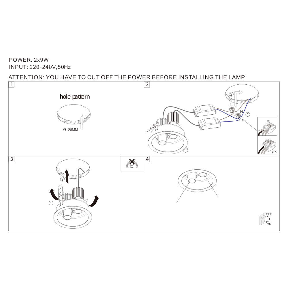- Монтажен отвор: ф128 мм