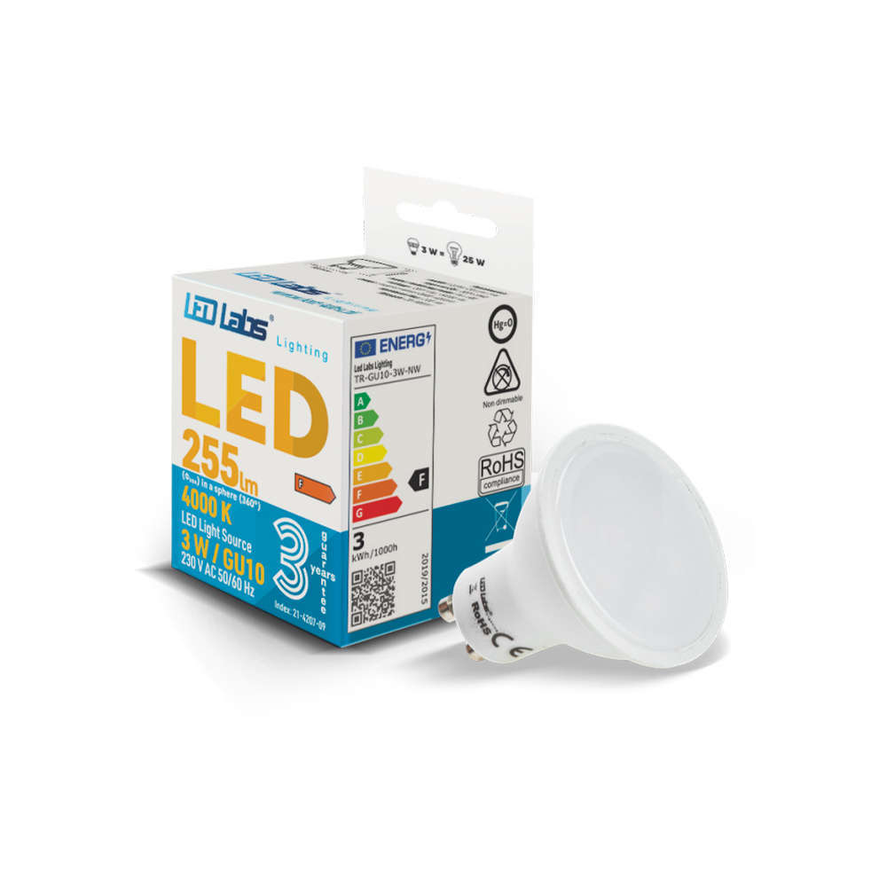 Изберете надеждно и икономично решение за основно или акцентно осветление с LED луничката Led Labs GU10 3W. С неутрална бяла светлина (4000K), светлинен поток 255 lm и широк ъгъл на осветяване от 120°, тя осигурява равномерна и ненатрапчива светлина, идеална за офиси, кухни, коридори и магазини. Благодарение на ниската си консумация от 3W и дългия живот, тази лампа е отличен избор за устойчиво и дълготрайно осветление. Лесна инсталация чрез стандартен GU10 цокъл.