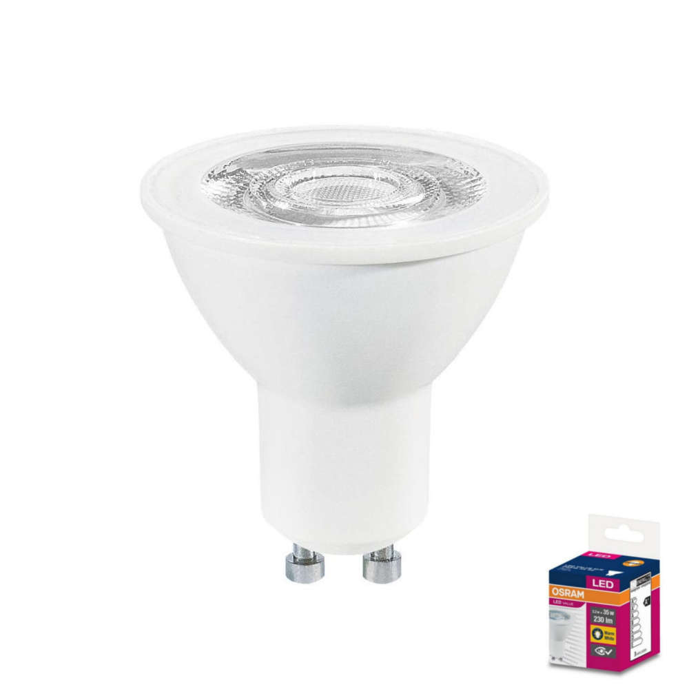 LED луничка Osram 3.2W - Spot серия насочени led лунички с цокъл GU10 излъчващи 2700К топла светлина с ъгъл на светене от 36°. Osram насочена луничка подходяща за директен ретрофит на халогенна крушка с мощност до 35W, предназначена за инсталиране в тела за лунички с диаметър 51mm. Спот led лампа с висок коефициент на цветопредаване подходяща за осветяване в магазини, хотели, заведения, домашни помещения и места с необходимост от акцентно осветление.