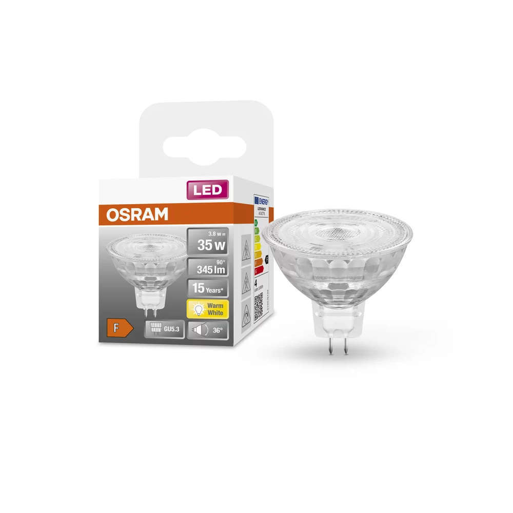 СПОТ LED луничкa Osram 12V,GU5.3,3.8W,2700K,345lm,36°,стъклена