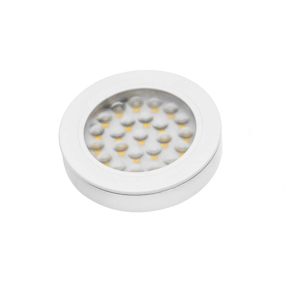 Мебелна LED луна за повърхностен или вграден монтаж, кръг, стационарна, IP20, SMD диоди, 1.7W, 130lm, 12VDC, 3000K, 70°, бяло тяло, поликарбонат