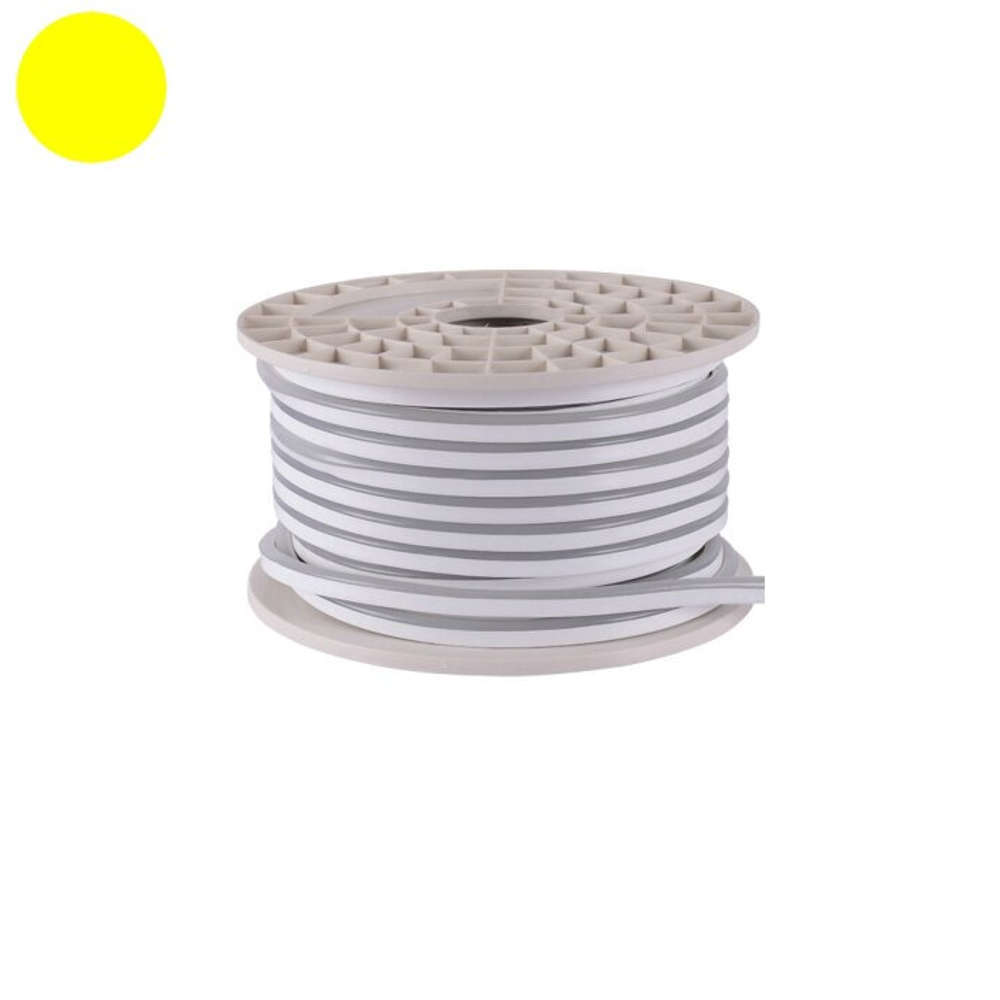 LED неон 12V DC IP65 6W/m 2800K 120SMD2835/m 300lm/m - водоусточйив гъвкав лед неон, който ви позволява да правите индивидуални надписи, шарки и лога. LED лентата е разположена в гъвкава, силиконов обвивка и е чудесна алтернатива на традиционната водоустойчива LED лента. Лед неон 12V генерира силна топла 2800К светлина и е устойчив на повреди и външни атмосферни условия. Има висока степен на защита IP65. Мощността на LED неон 12V DC е 6W/m (светлинен поток 300 lm/m). За захранването му отделно се закупуват контактен щекер 12V и крайна силиконова тапа.