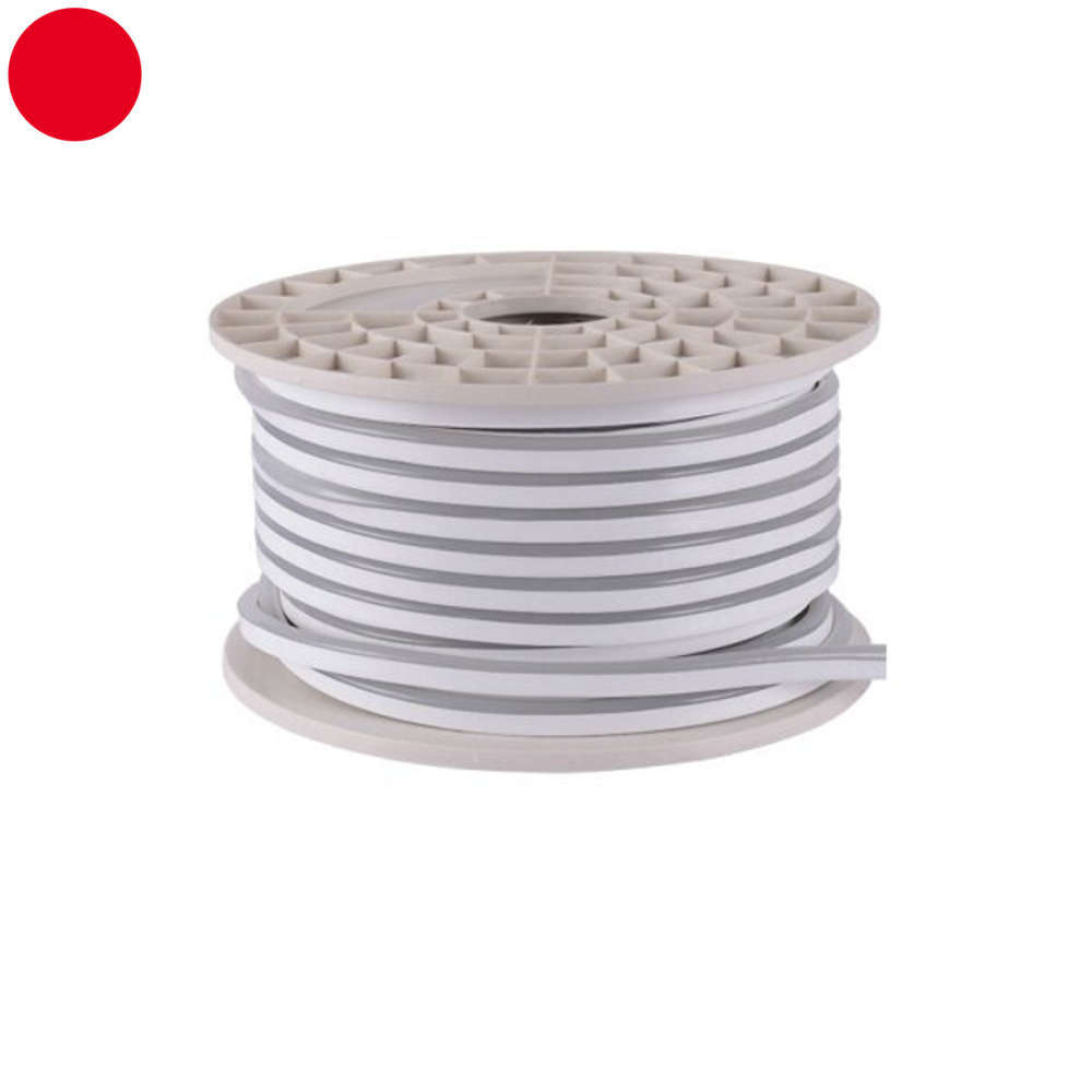 LED неон 12V DC IP65 6W/m червена 120SMD2835/m 300lm/m - водоусточйив гъвкав лед неон, който ви позволява да правите индивидуални надписи, шарки и лога. LED лентата е разположена в гъвкава, силиконов обвивка и е чудесна алтернатива на традиционната водоустойчива LED лента. Лед неон 12V генерира силна червена светлина и е устойчив на повреди и външни атмосферни условия. Има висока степен на защита IP65. Мощността на LED неон 12V DC е 6W/m (светлинен поток 300 lm/m). За захранването му отделно се закупуват контактен щекер 12V и крайна силиконова тапа.
