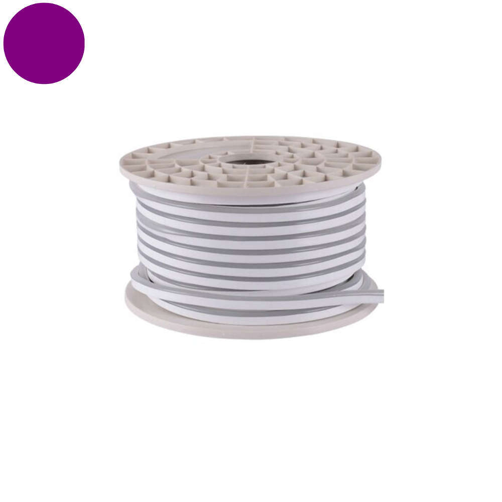 LED неон 12V DC IP65 6W/m лилава светлина 120SMD2835/m 300lm/m - водоусточйив гъвкав лед неон, който ви позволява да правите индивидуални надписи, шарки и лога. LED лентата е разположена в гъвкав, силиконов обвивка и е чудесна алтернатива на традиционната водоустойчива LED лента. Лед неон 12V генерира силна лилава светлина и е устойчив на повреди и външни атмосферни условия. Има висока степен на защита IP65. Мощността на LED неон 12V DC е 6W/m (светлинен поток 300 lm/m). За захранването му отделно се закупуват контактен щекер 12V и крайна силиконова тапа.