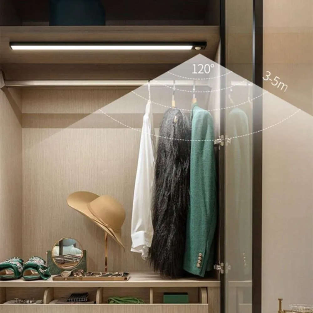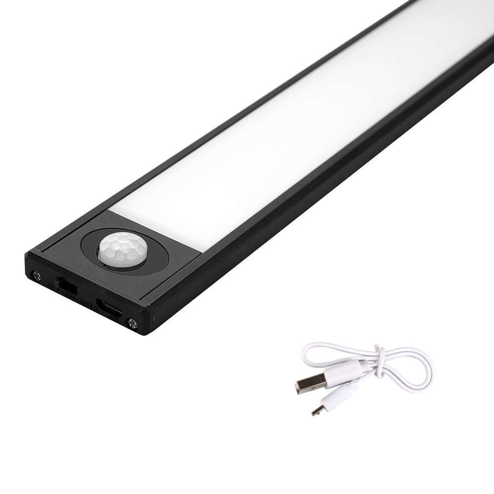 Мебелна LED лампа със сензор и батерия, материал алуминий и PC, цвят черен мат и бял, 50см, с магнитно закрепване. Наличен превключвател с функции ON/OFF/ и режим Auto, като в последения режим е активиран сензора за движение.
