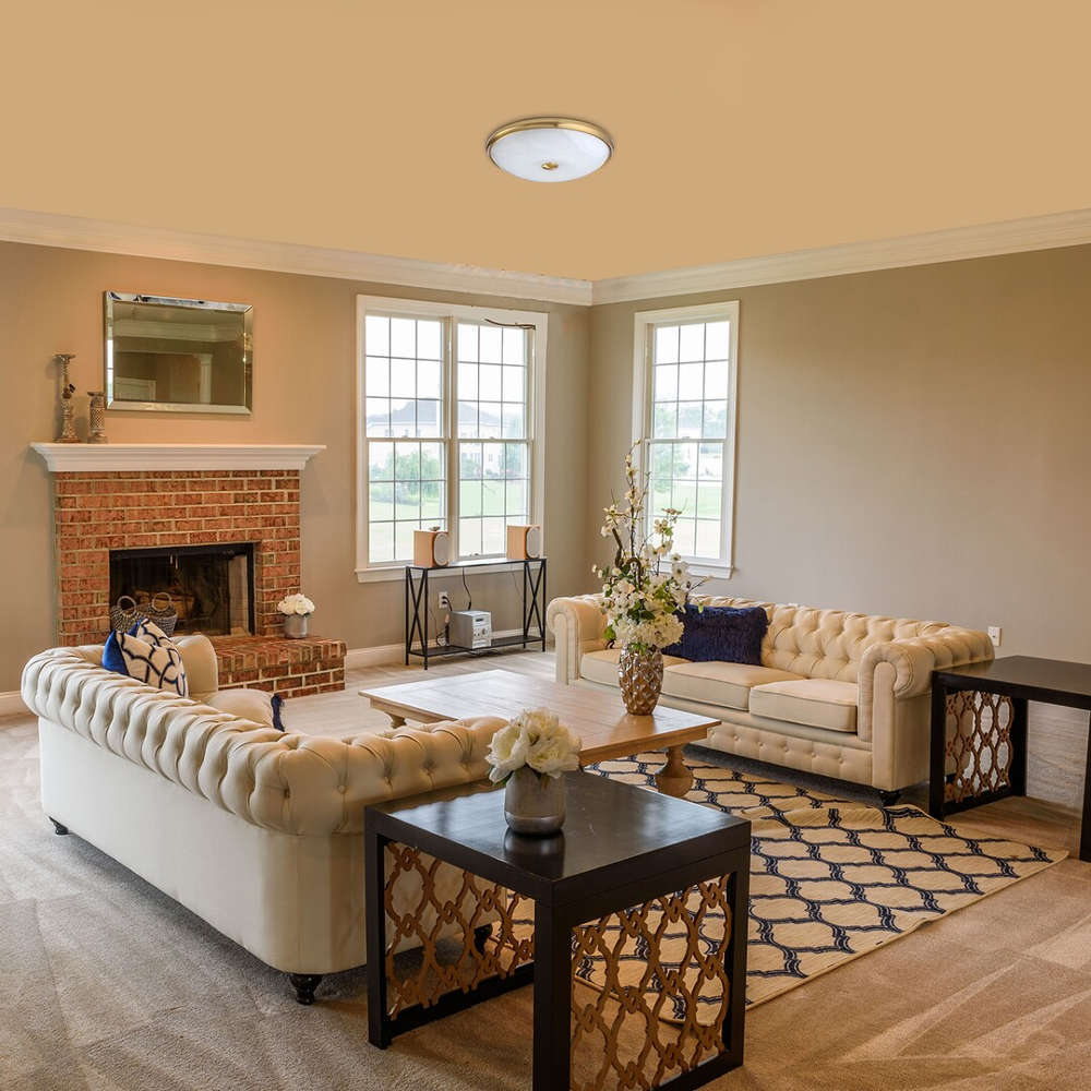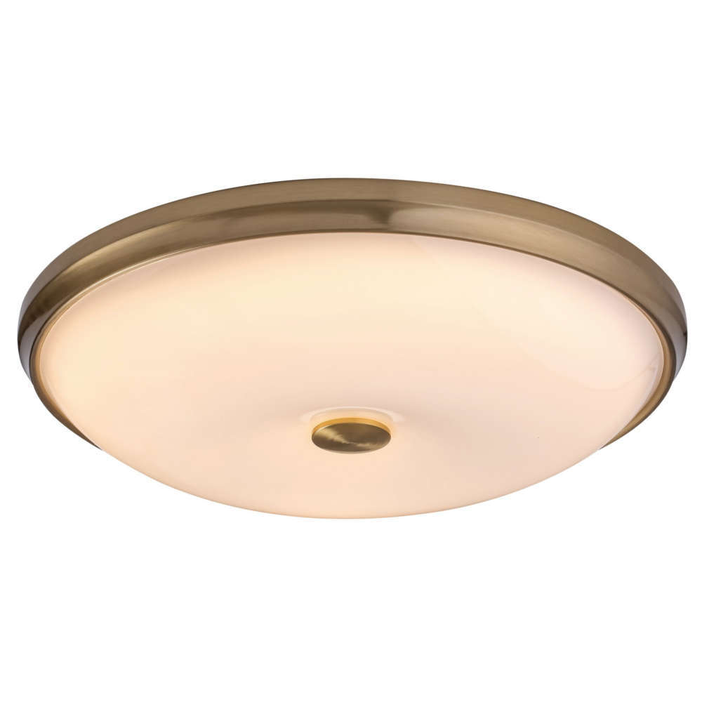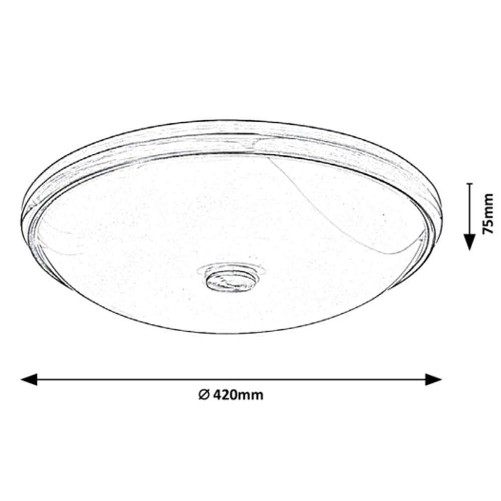 LED Осветително тяло за таван плафон Rabalux Jasna 5196 - елегантна лед плафониера изработена от метал и стъкло в цвят месинг. Размерът на осветителното тяло е в ширина 420мм и във височина 75мм. Интегриран е LED модул 24W излъчващ 2700К топла светлина. LED осветително тяло за таван плафон Rabalux Jasna 5196 е подходящ за основно осветление в кухни, дневни, спални, офиси и магазини.