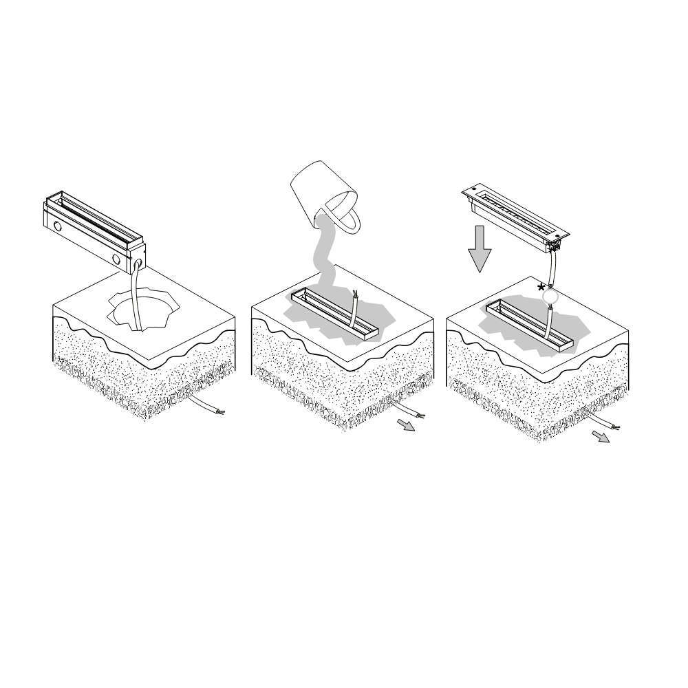 Линейно тяло за вграждане в земя LED 19W, 1700lm, 3000K, IP67, IK08, корпус от закалено стъкло и неръждаема стомана