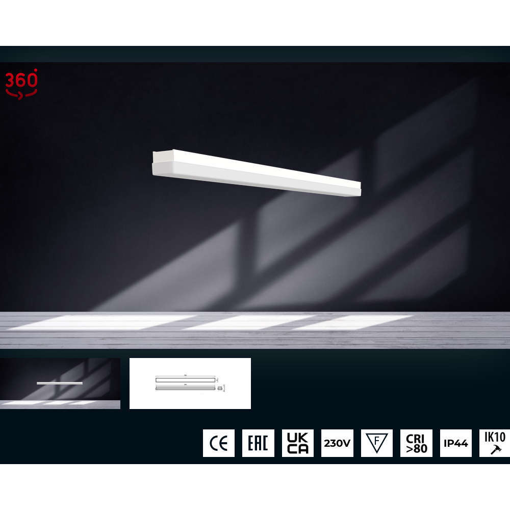 Правоъгълен панел за повърхностен монтаж LED IP44, 19W, 2200lm, 4000K, 360°, корпус алуминий, дифузер поликарбонат