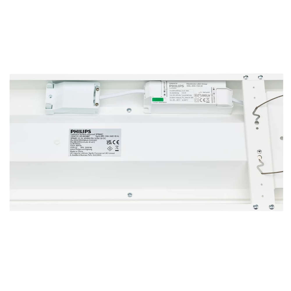 LED панел за външен монтаж Philips Ledinaire 911401843887 – енергийно ефективно решение с регулируема мощност 28–33W, светлинен поток до 4000lm, 4000K неутрална светлина, UGR<19 без заслепяване и елегантен дизайн. Подходящ за офиси, заведения и жилища.
