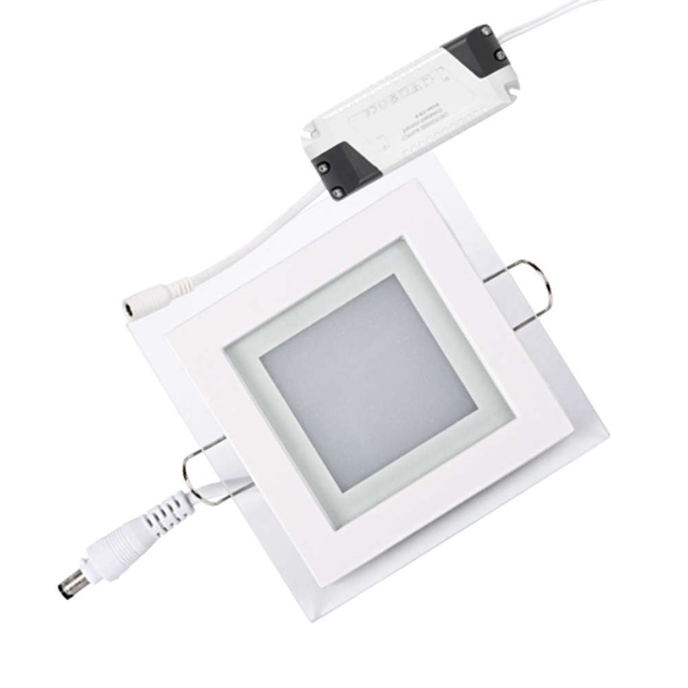 Стъклен лед панел за вграждане 6W, квадрат 100mm, 6000K бяла светлина