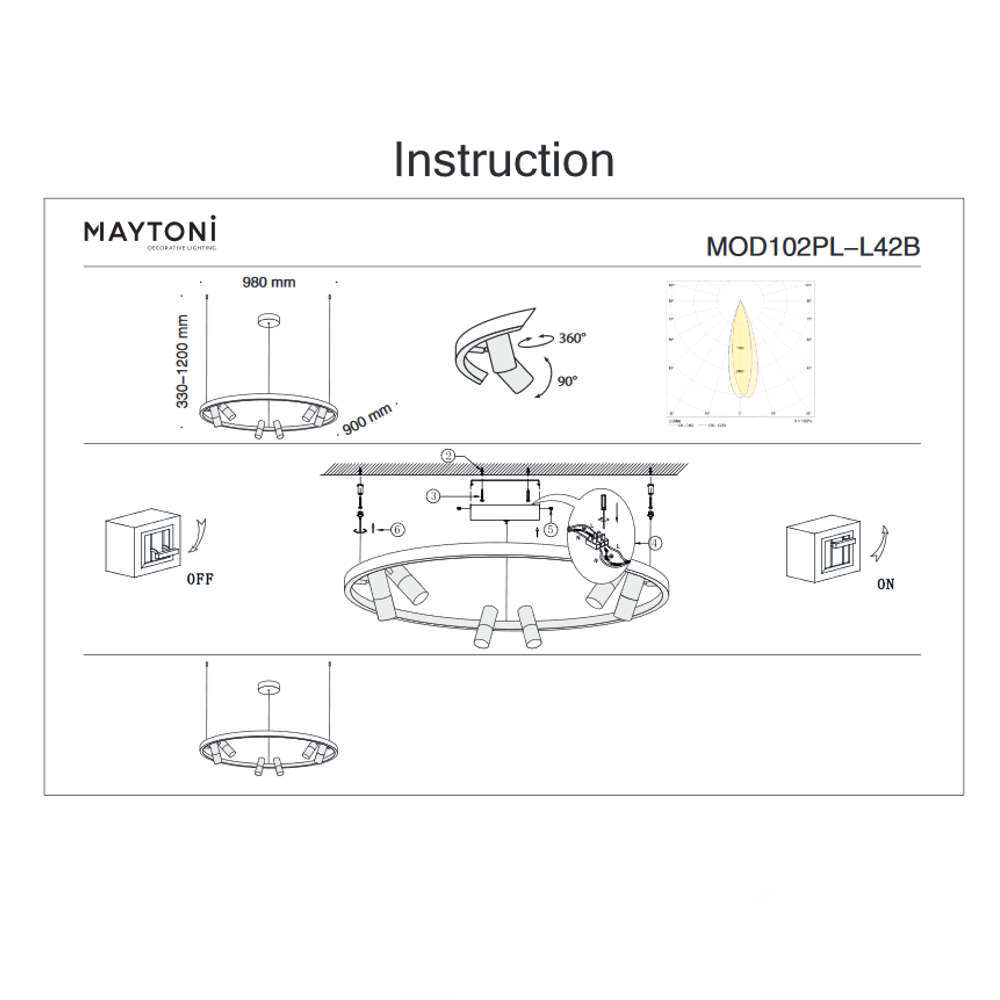 Луксозен LED пендел за таван, 42W, топла светлина, насочващисе модули, ф98см, регулиране на провеса от 330 до 1200мм