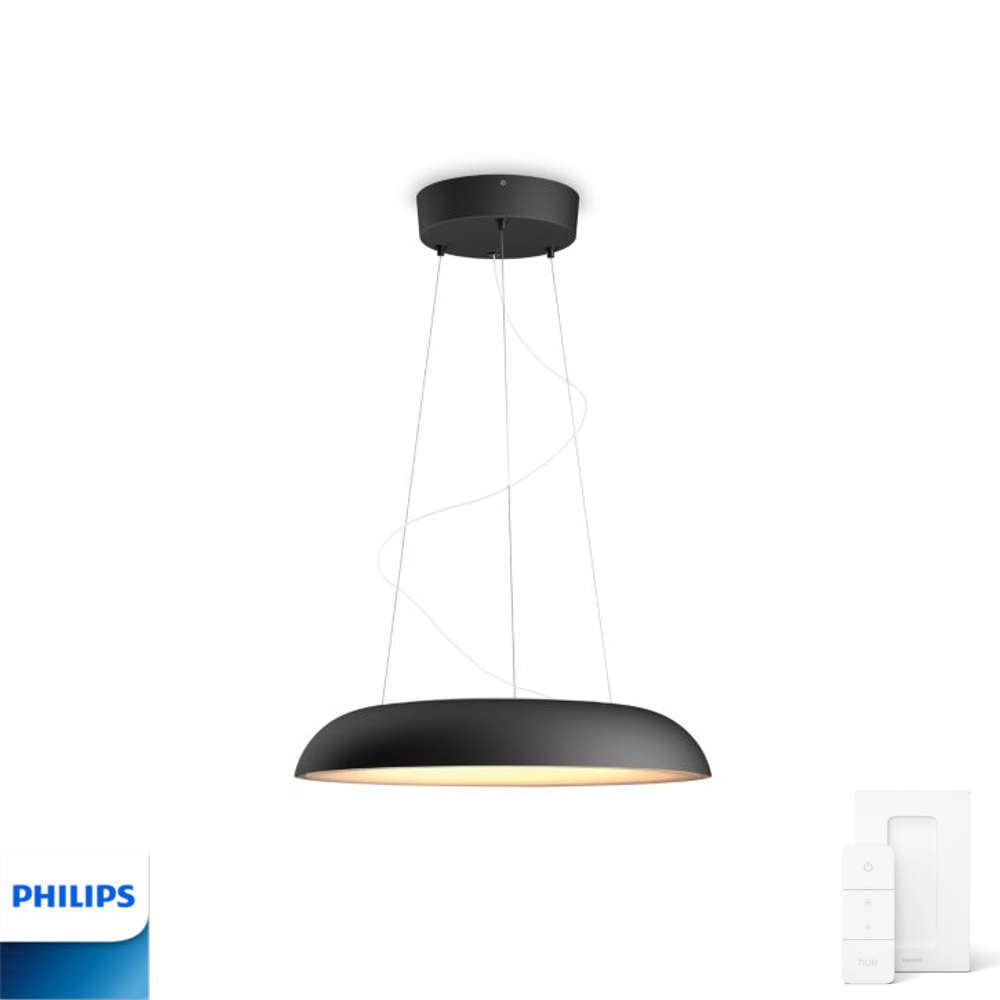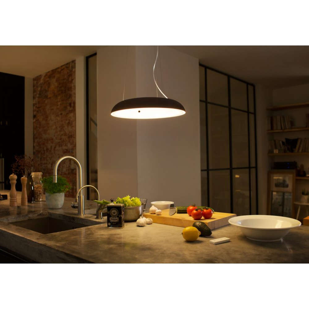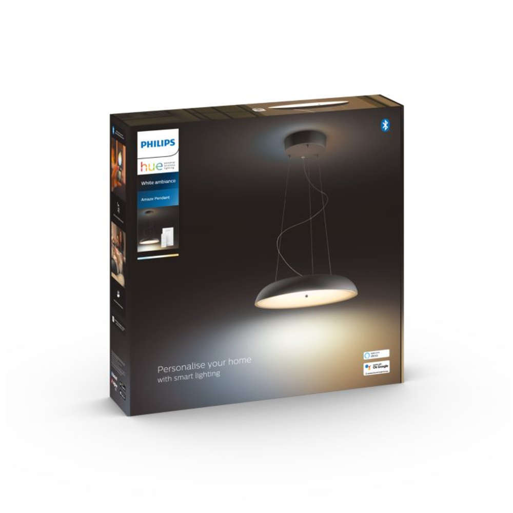 Пенделът Amaze LED е истински качествен продукт от марката производител Philips и убеждава с добре обмислената си функционалност. Вградените светодиоди в лампата, която е идеална за основно осветление, могат да светят в различни нюанси на бялото. Тук са възможни общо 50 000 нюанса на бялото в спектър, вариращ от топло бяло до дневна светлина. LED пендел Philips Hue Amazeе модерна лампа, която може да се управлява по два начина: или с доставения превключвател за димер, който действа като дистанционно управление, или много модерно с приложение или гласов асистент. Основните функции като включване/изключване и димиранене, както и четири различни светлинни избора, като релаксация или концентрация, могат лесно да се контролират с включения в комплекта превключвател. За пълния набор от функции обаче е необходима интеграция в съществуваща, съвместима интелигентна домашна система или използване на Bluetooth приложението Philips Hue.