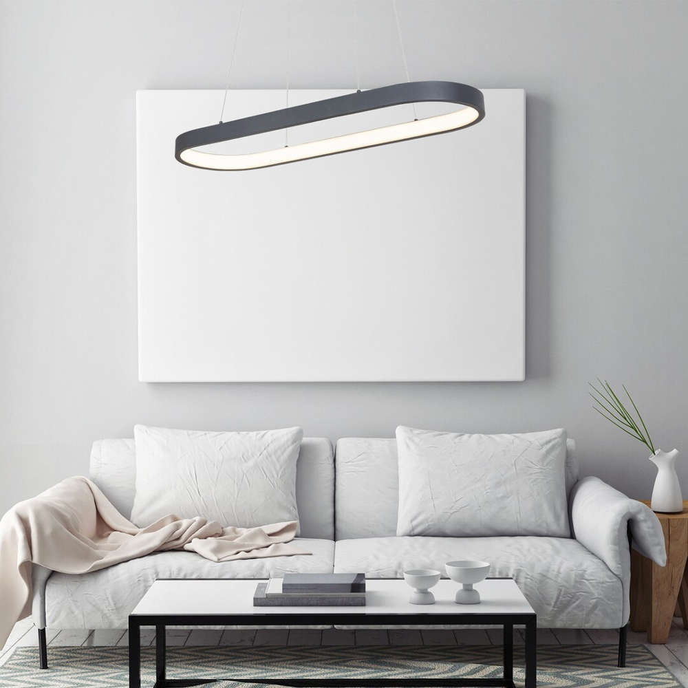 Висящата лампа Rabalux Athos е един от представителите в минималистичен стил и ще бъде чудесен избор за вашия модерен дом. Изработен от метал и пластмаса, този LED пендел се препоръчва главно за основно осветление във всекидневна или трапезария. Благодарение на високото ниво на яркост и перфектния дизайн, това осветително тяло може да освети доста голяма площ. Изработен от метал със сива декоративна основа, пендела има вграден LED източник на светлина с мощност 84W, интензивността му е 4 854 лумена, цветната температура - 4000K, а животът - 30 000 часа. Висящата лампа Athos може да бъде димирана на три степени с обикновен стенен ключ. Размерите на LED пендел Rabalux Athos 6679 са следните: 900 mm надлъжен диаметър, 300 mm напречен диаметър, 1200 mm разстояние от тавана. Този модерен и стилен модел се предлага с 3-годишна гаранция.