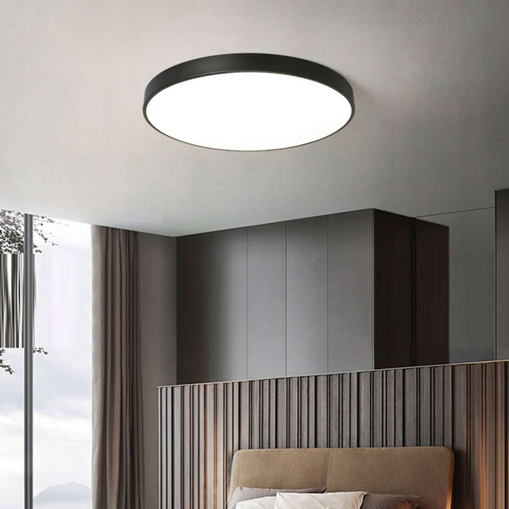 Черен LED плафон кръгло тяло метал и акрил цвят черен мат