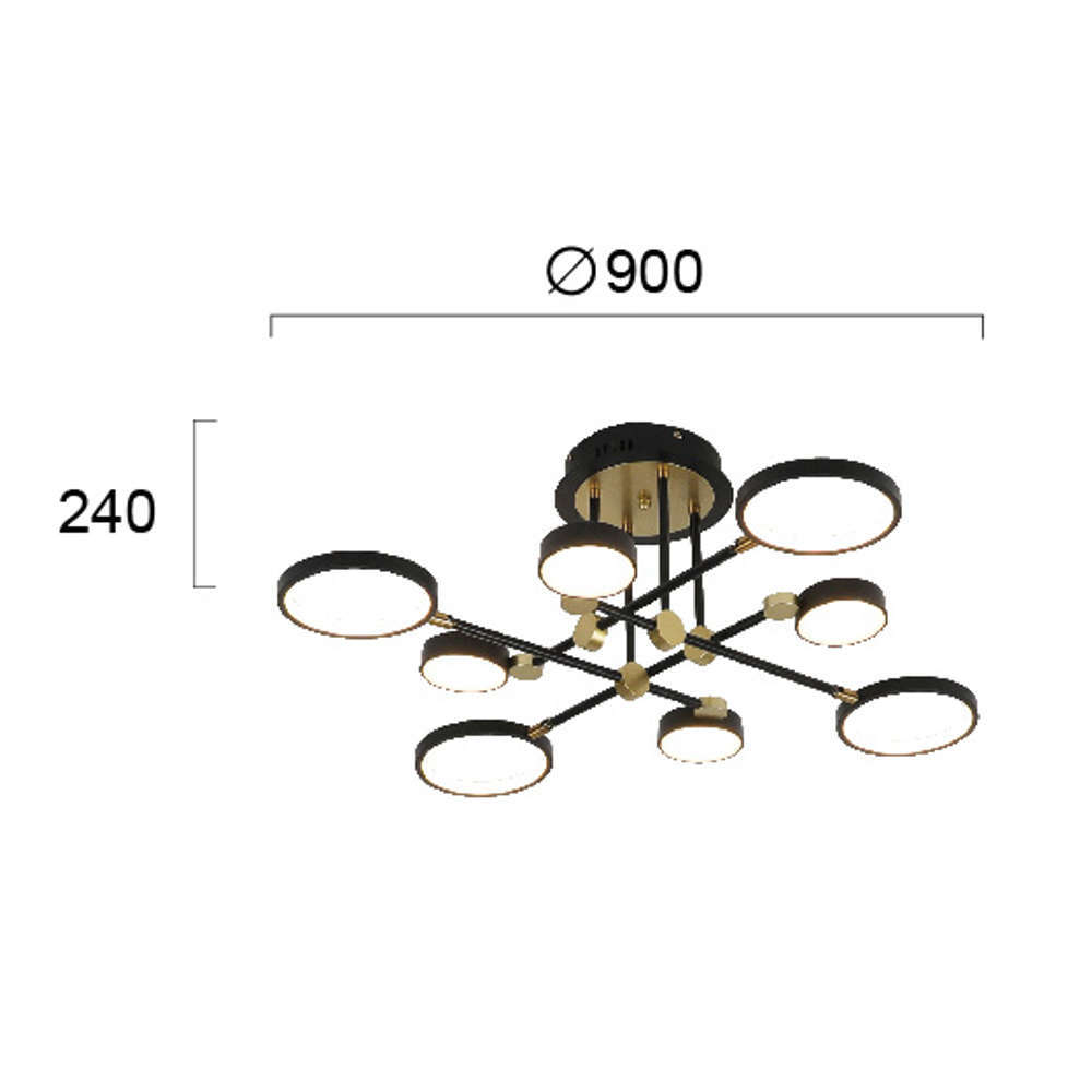 Модерна плафониера LED 63W 3000K 5040lm CRI80 IP20 метал и поликарбонат цвят черно и месинг