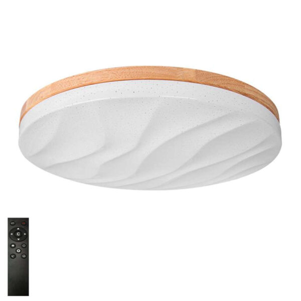 Плафониера с дистанционно управление и избор на цвят 3000-4000-6500К, LED 54W, 4320lm, IP22, метал, дърво и поликарбонат с ефект звездно небе