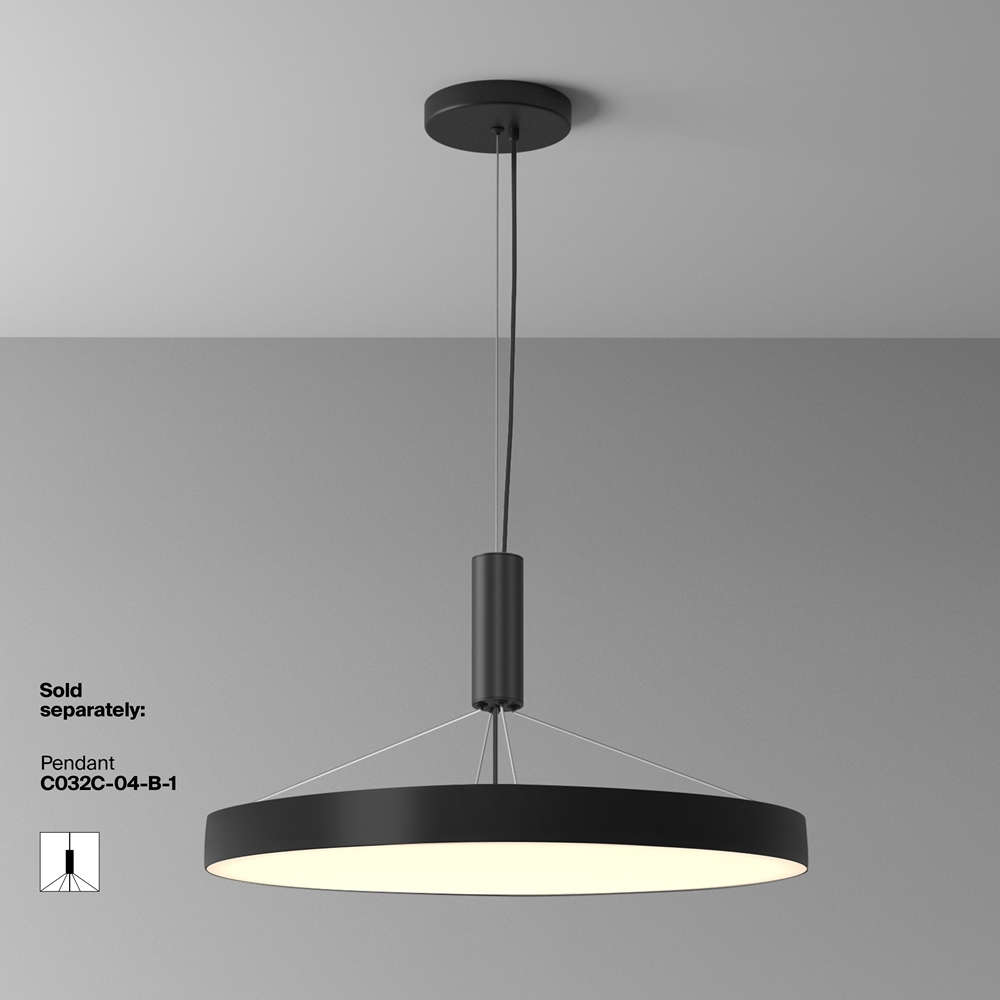 Кръгъл LED плафон за таван Maytoni C032CL-90W3K-RD-B от серия Zon с мощност 90W, топла светлина 3000K и голям диаметър Ø60см за равномерно осветяване на просторни помещения.