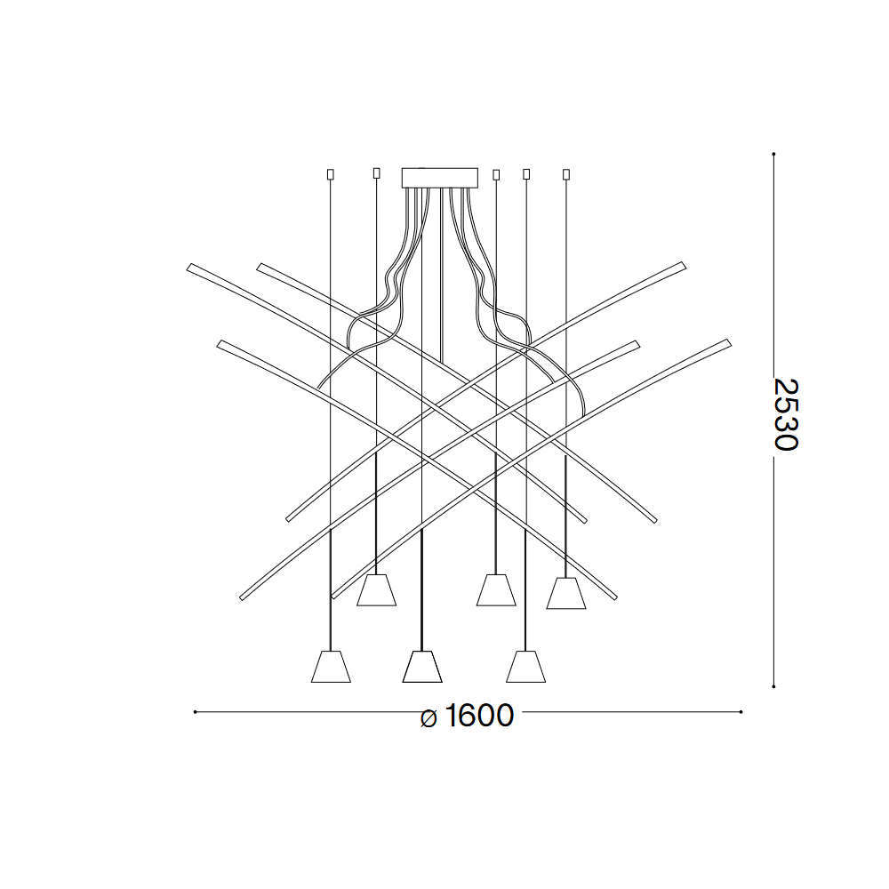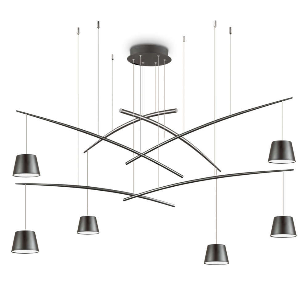 LED полилей Fish sp6 Ideal lux 196992 e перфектен избор за среда, която прегръща както миналото, така и бъдещето в своя дизайн. Окачването, кото подлежи на регулиране се състои от стоманен кабел с хромирана метална опора. Розетката, дифузерите и рамената на елементи са изработени от матово боядисан метал, което придава на полилея елегантен и изискан завършек. Източникът на светлина е LED с мощност от 37W и яркост от 2800 лумена, предлагайки ефектно и ярко осветление. Топлият светлинен тон при 3000°K създава гостоприемна и комфортна атмосфера.