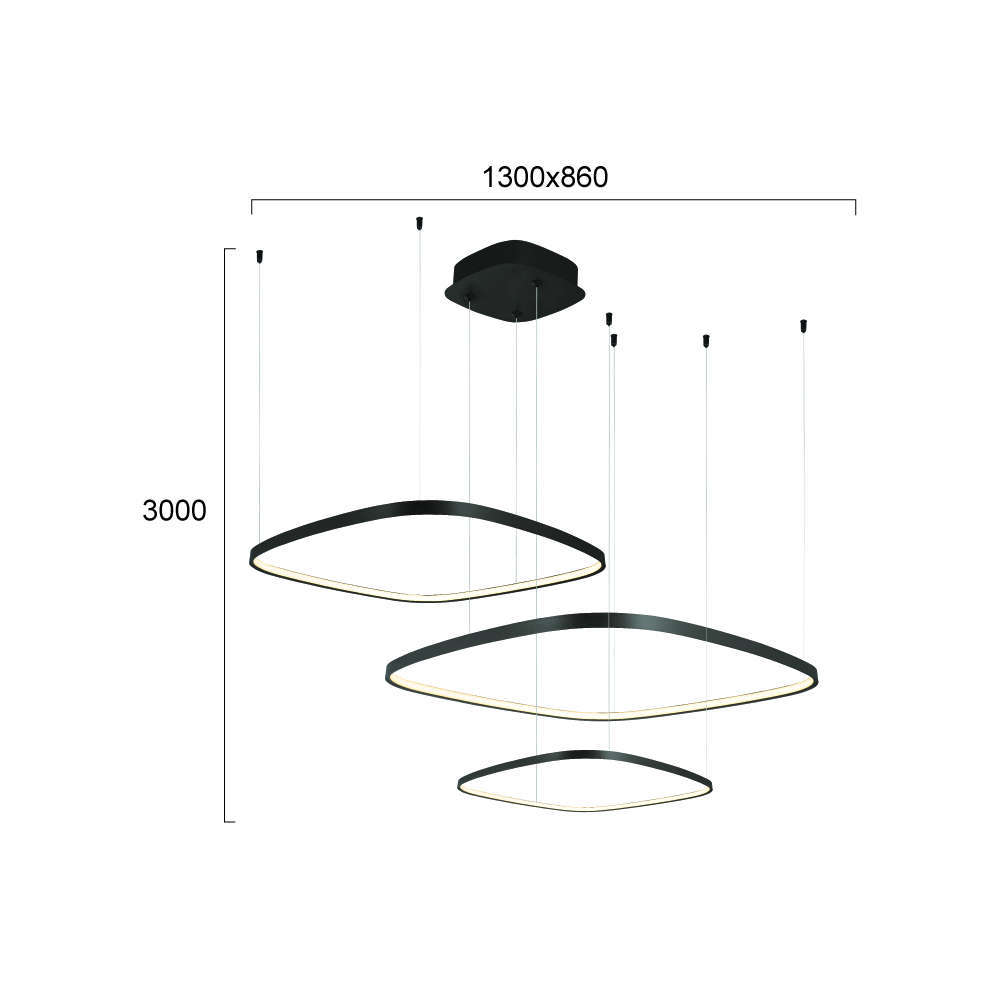 Висяща тройна лампа LED 70W, 2400lm, CCT 3000-4000-6000K, CRI80. IP20, димиране и управление с приложено дистанционно