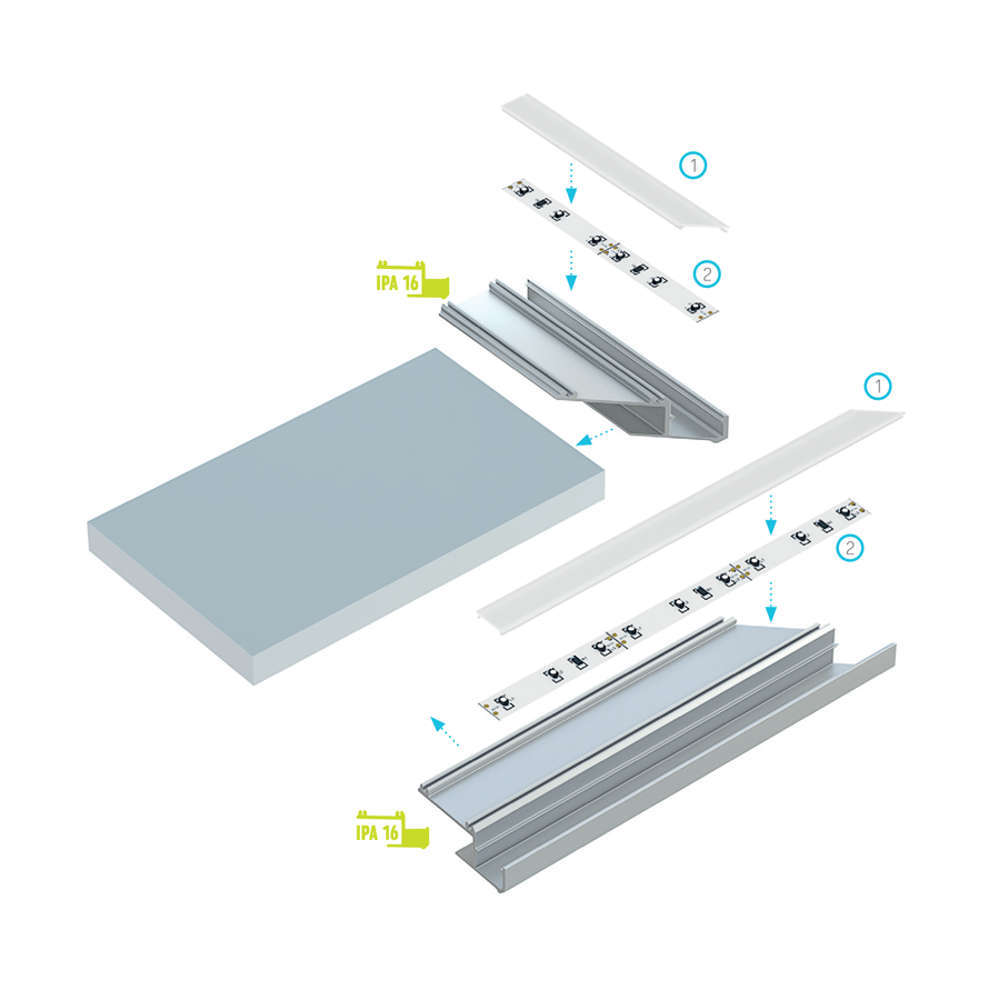 Опции с поръчка за дифузери за краен алуминиев профил за гипсокартон Lumines Lighting IPA12:
