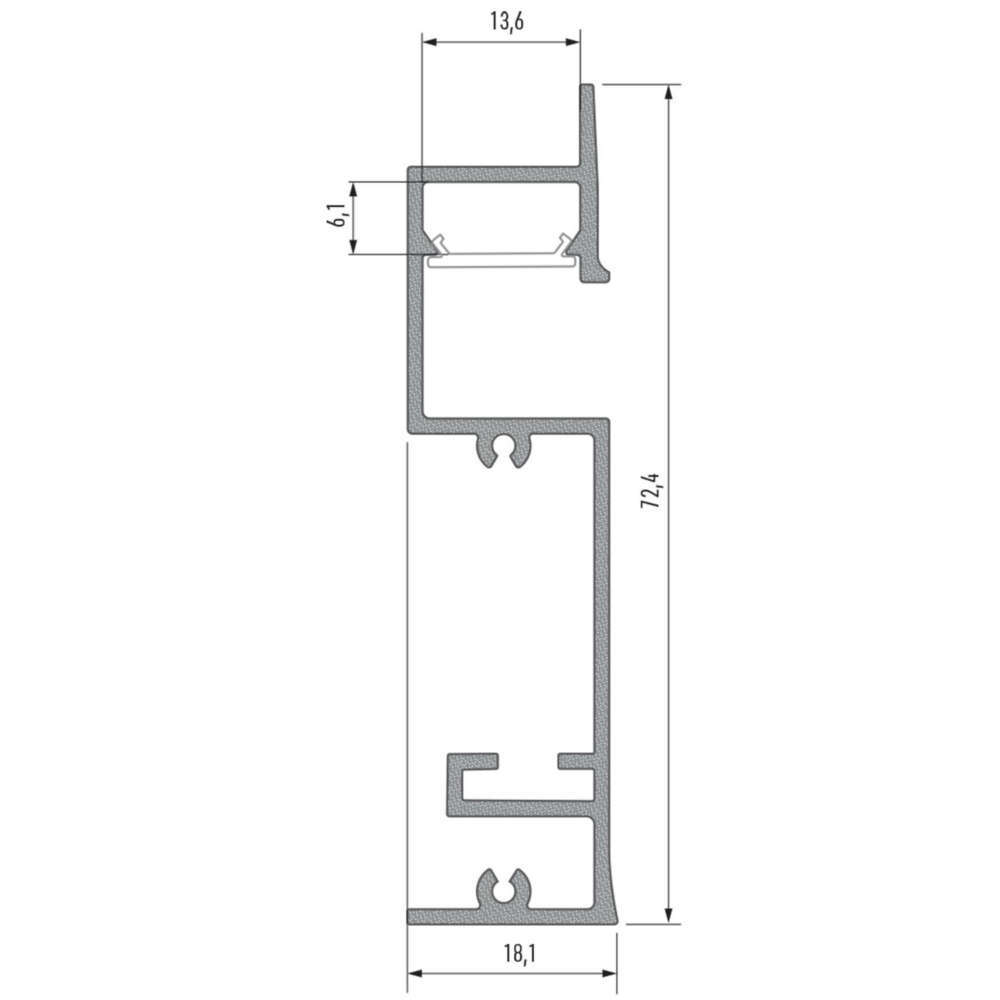 LED профил за гипсокартон 2 метра, за первази с индиректна подсветка, за LED ленти с размер 12 милиметра, сив