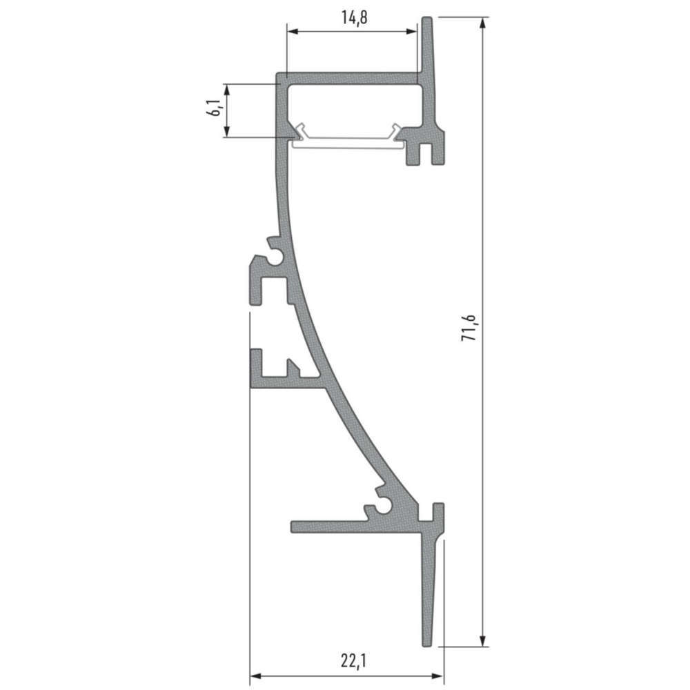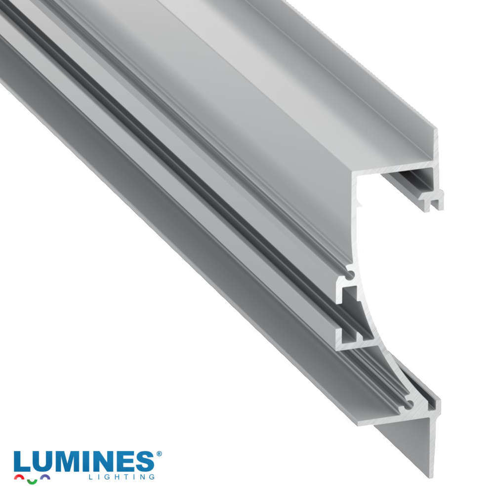 Lumines TIANO 10-0564-20 е LED профил за вграждане в гипсокартон подходящ за осветяване на вътрешни пътеки, коридори, стъби, за осветление на жилищни помещения и търговски обекти. Предназначен за изработка на осветителни тела за стъпала. Улей за LED лента адаптивен за монтаж на LED лента с ширина до 12mm.