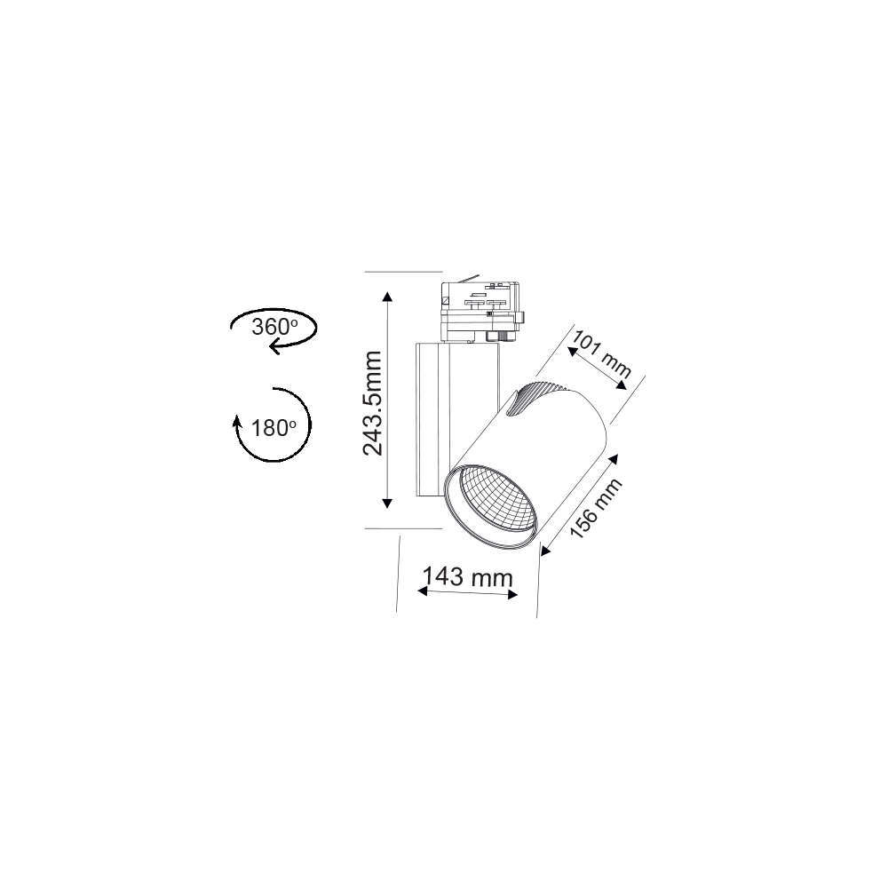 Релсов лед прожектор за трифазна шина, алуминий, насочване на тялото