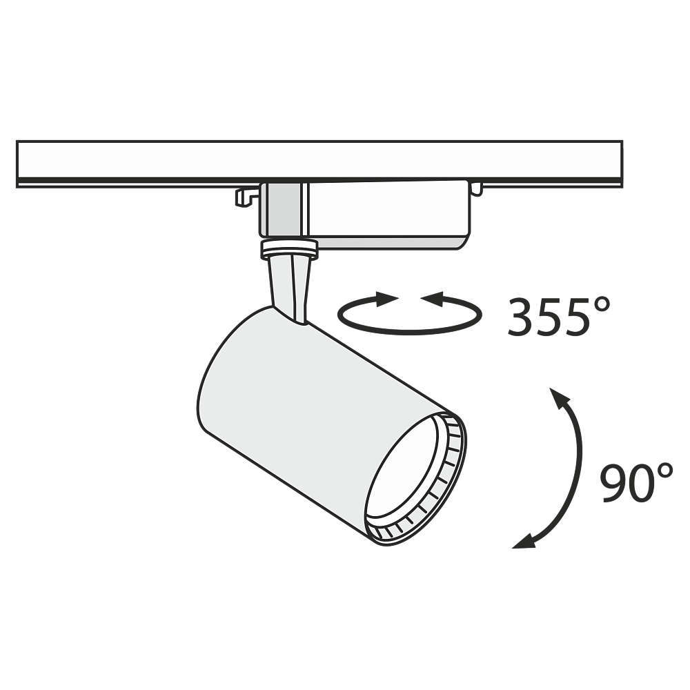 Релсов LED прожектор за монофазна шина 220V, 12W, 4000K, 900lm, 24°,CRI>80, черен мат
