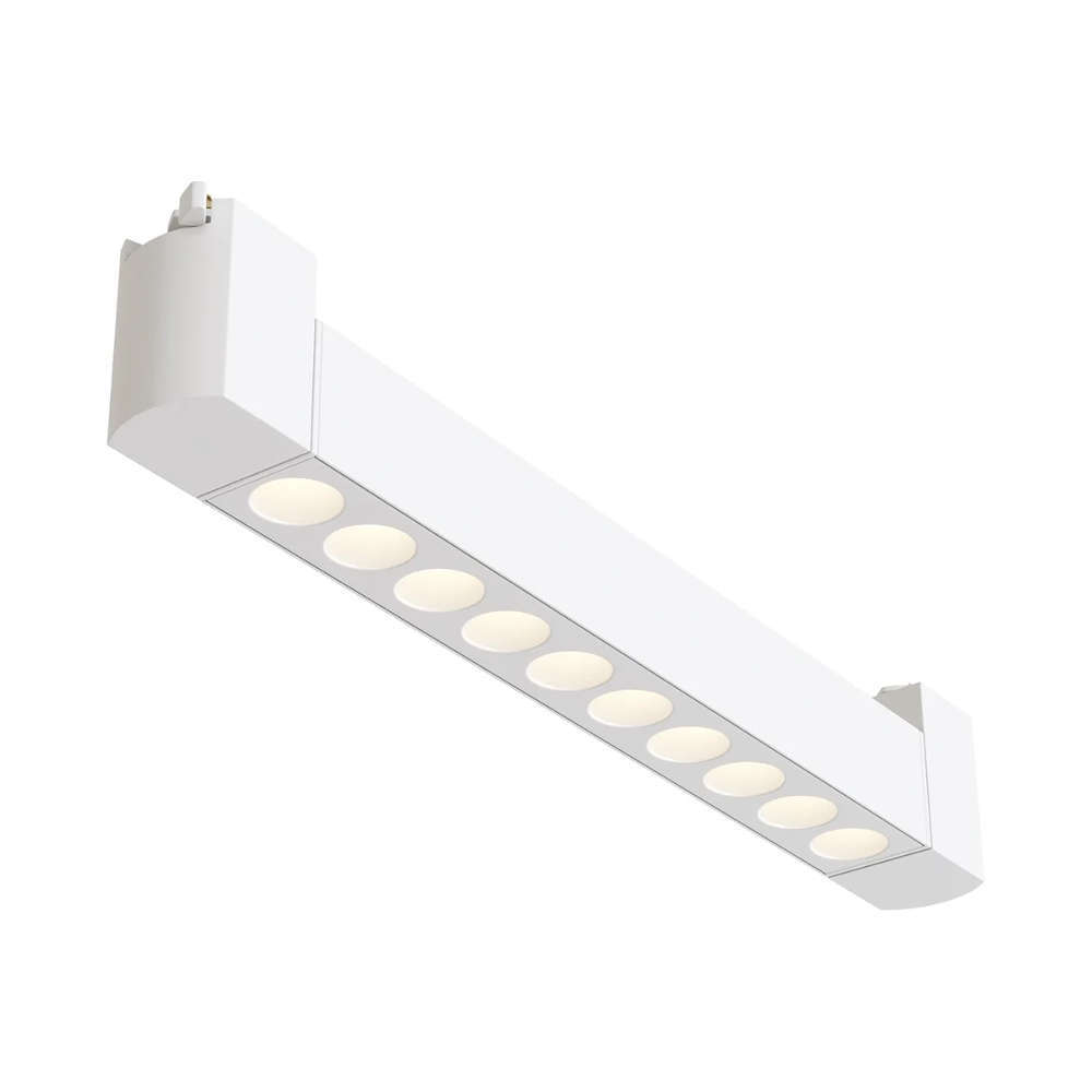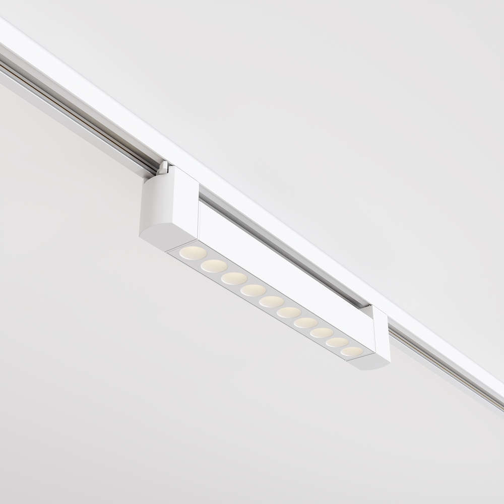 Линеен LED прожектор за монофазна шина Maytoni Points TR010-1-10W3K-M-W - спот прожектор от висок клас на немската компания Maytoni с функционалност и надеждност от водещ производител за релсово LED осветление. Релсовият прожектор е с вградени LED диоди с 36° светене на топлата светлина с ориентация на корпуса в хоризонтална посока до 350° , а специален дизайн на рефлектора елиминара до минимум отблясъци и заслепяване. Предназначен да се използва като акцентиращо осветление върху архитектурни елементи, релефни стени, произведения на изкуството, знаци и други. Линеен LED прожектор за монофазна шина Maytoni Points TR010-1-10W3K-M-W е предназначен за монтаж на монофазен тип шина.