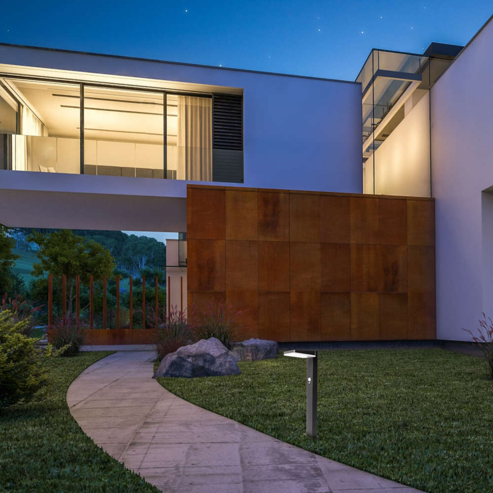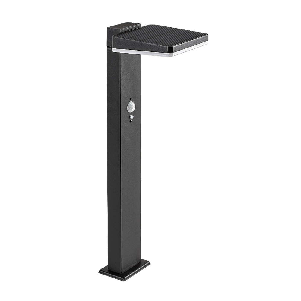 Соларна лампа Rabalux Lasset 77079 с PIR сензор за движение, 4,4W, 600lm и 4000K. Обхват 8–12 м, ъгъл 110°, батерия 3,7V 2200mAh. IP54 защита. Соларен градински стълб подходящ за осветяване, на пътеки, алеи и външни пространства.