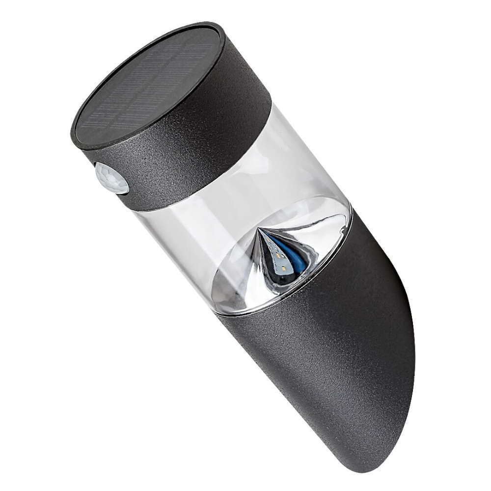 Външно соларно осветително тяло фасаден аплик, корпус неръждаема стомана в черен цвят