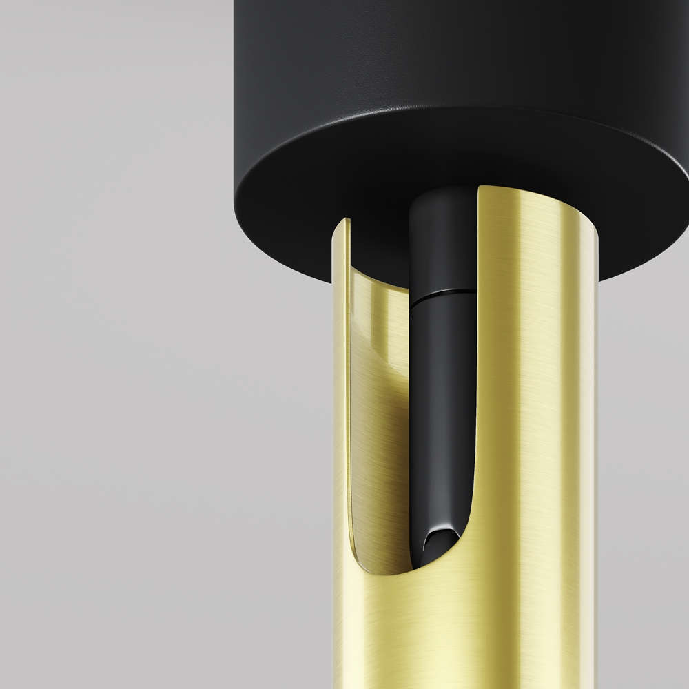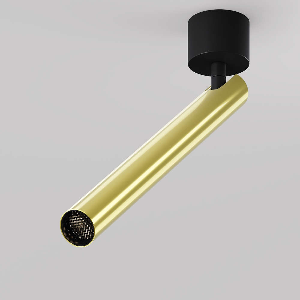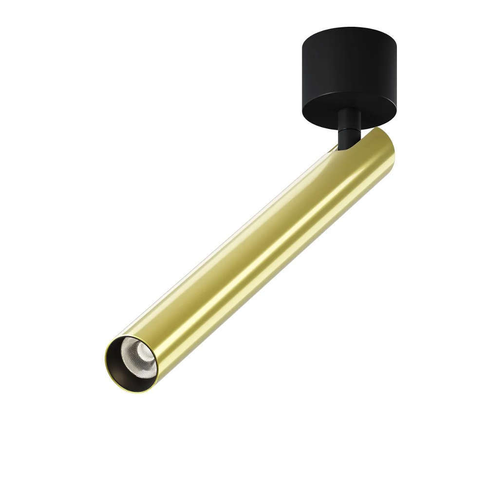 Maytoni Focus T C141CL-L300-6W3K-BBS е елегантен LED спот за вътрешен таванен монтаж, съчетаващ функционалност и луксозен дизайн в черно и златисто. С мощност 6W и спотова топла светлина (3000K), той е идеален за акцентно осветление в дневни, коридори, магазини и галерии. Насочваемият цилиндричен корпус позволява прецизен контрол на светлинния поток. Моделът е част от серията Focus T, която включва варианти в изчистено бяло и черно.
