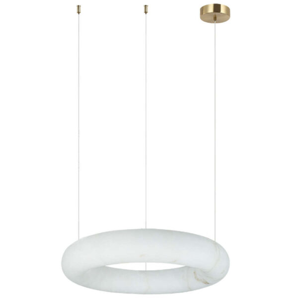 Компактна висяща LED лампа Zambelis 2542 от естествен алабастър и месинг с изчистен дизайн и топло излъчване. Подходяща за уютни интериори, където се търси усещане за фин лукс и балансирано осветление.