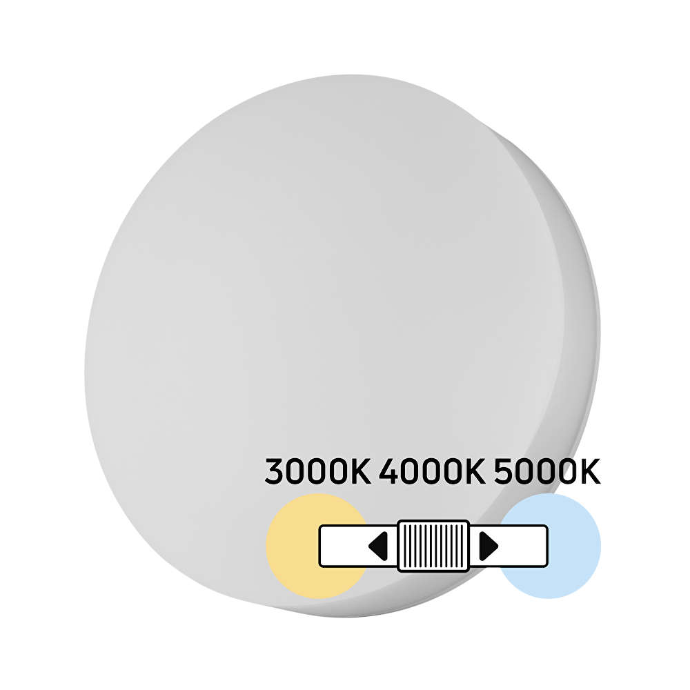 Моделът разполага с вградени превключватели, разположени във влагозащитената клемна кутия, които позволяват избор на три нива на мощност – 18W, 24W или 30W, както и на три цветни температури – 3000K (топла), 4000K (неутрална) и 5000K (студена светлина). Това позволява плафониерата да бъде адаптирана към конкретното помещение и приложение без необходимост от смяна на осветителното тяло.