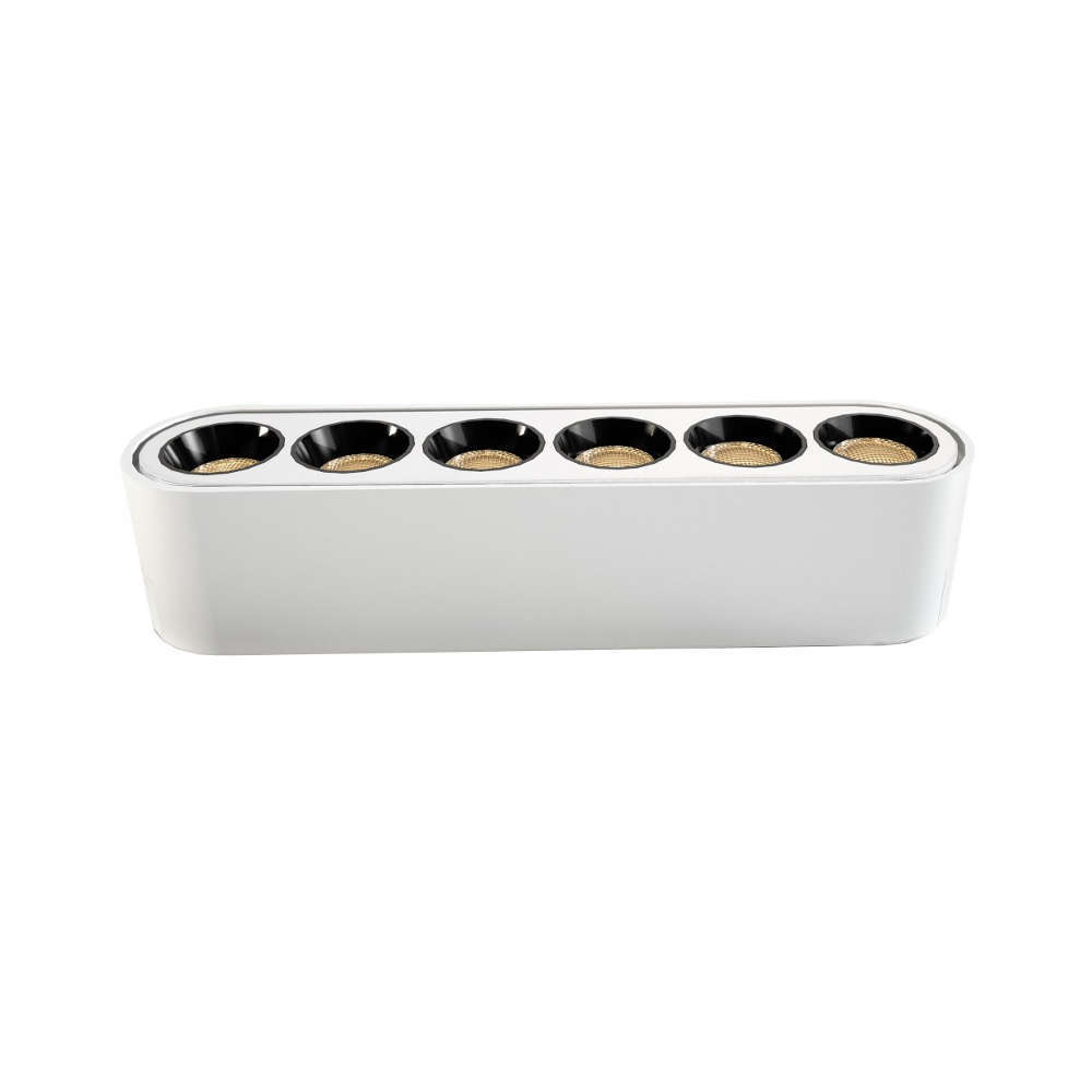 Линеен прожектор за магнитно осветление LVT Luxo 1754 е ново магнитно осветително тяло с мощност 6W от серията LVT Luxo, оборудванo с 6 отделни диода, скрити под лещи, фокусиращи светлината (24 градуса). Това е модерно предложение за ефектно интериорно осветление, което можете да монтирате в магнитна шина за вграждане и за външен монтаж от серията. Благодарение на уникалната си форма и конструкция, това линейно магнитно тяло се отличава от другите лампи и работи чудесно във всяка модернистична подредба. Линеен прожектор за магнитно осветление LVT Luxo 1754 е оборудван с брандиран източник на светлина Bridgelux и осигурява светлинен поток от 480 лумена. При този модел лампа си струва да се отличи и високият индекс на естествено цветопредаване CRI>90 Ra.