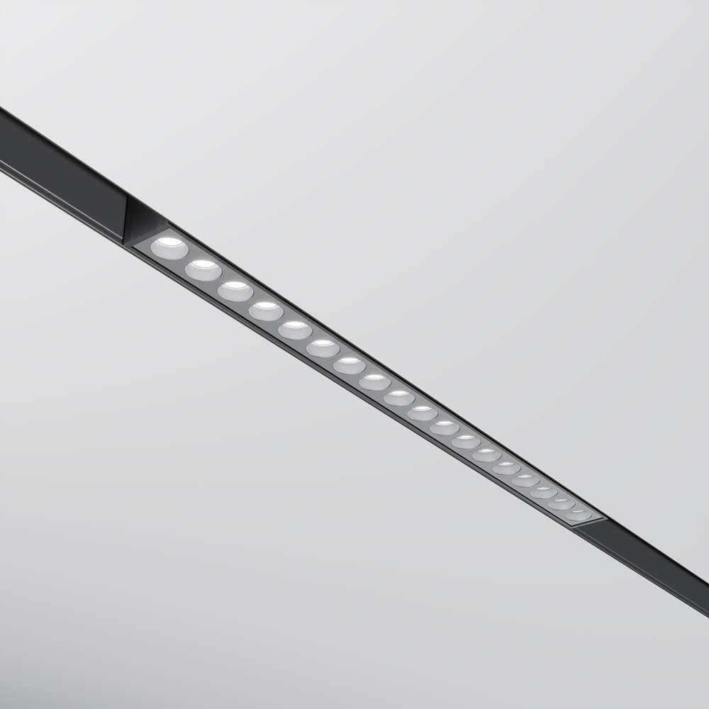 Линеен прожектор за магнитно осветление Maytoni Exility TR031-2-18W4K-B е ново осветително тяло за изграждане на релсова осветителна система на немския производител Maytoni. Предназначен е за монтаж в релси за вграждане или за повърхностно монтиране Maytoni Exility. Магнитният прожектор е с компактни размери 327x22.2mm. Черният корпус е изработен от алуминий, а излъчваната насочена неутрална светлина 4000К е с висок индекс на цветопредаване CRI90.