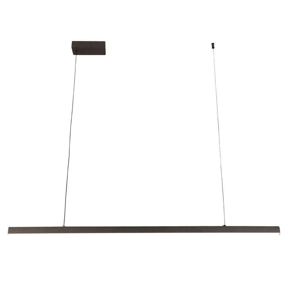 Дизайнът на черния алуминиев корпус се вписва безпроблемно в съвременни интериори, като придава елегантен и минималистичен вид. Осветителното тяло е предназначено за висящ монтаж, като позволява регулиране на височината, което го прави гъвкаво решение за различни пространства.