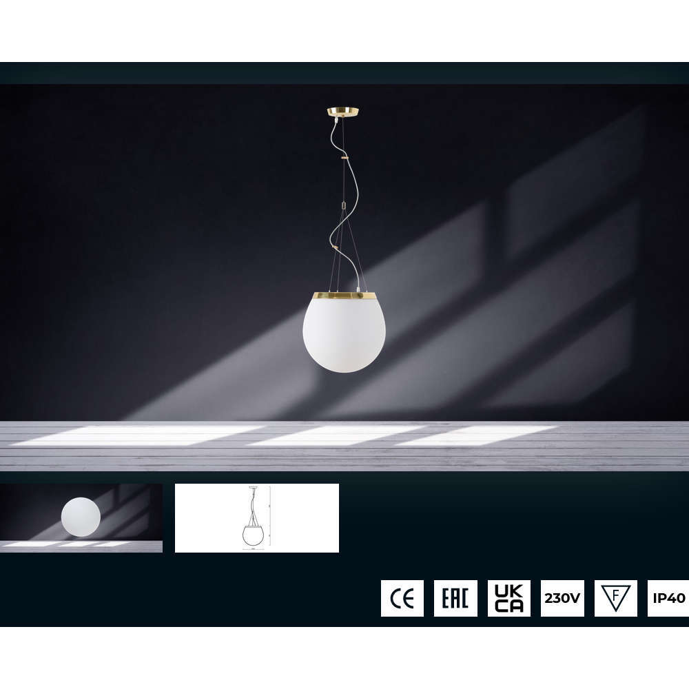 Висяща лампа от метал и стъкло, фасунга Е27, опалов дифузер и тяло в цвят полиран месинг