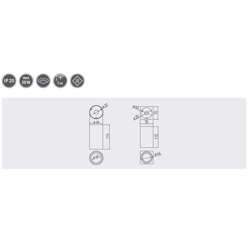 Луни за външен монтаж, черно кръгло алуминиево тяло, променлив ъгъл, резбово захващане