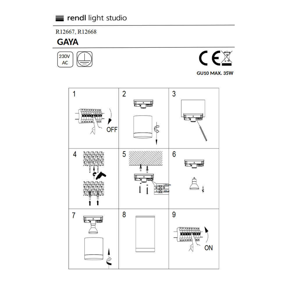 Луна за външен монтаж Rendl Light Studio GAYA R12667 - спот луна за таван с интегрирана фасунга GU10. Проектирана специално за насочено осветяване тя разполага с цилиндрично тяло изработено от алуминий с вдлъбнат ограничтел за монтиране на лампата за осигуряване на светлинен комфорт, без заслепяване. Серията LED спот луни Gaya се предлагат в бял и черен цвят.