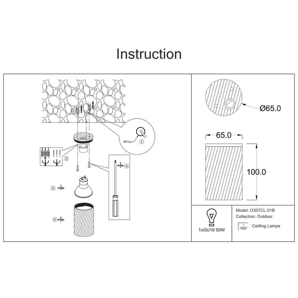 Луна за външен монтаж Maytoni Roll O307CL-01B е цилиндрична таванна лампа, изработена от прахово боядисан лят алуминий. Рефлектора е изработен от прозрачно безопасно стъкло, което го прави устойчив на удари и адаптивен към външните температурни разлики. Тази външна луна е с височина 10 cm и диаметър 6.5 cm. е подходяща, както вътрешно така и за външно осветление, благодарение на високата устойчивост срещу проникване на влага и прах. Фасадна аркитектурна луна с фасунга GU10 предоставя приятна светлина, без заслепяване благодарение на специалният мрежест филтър.
