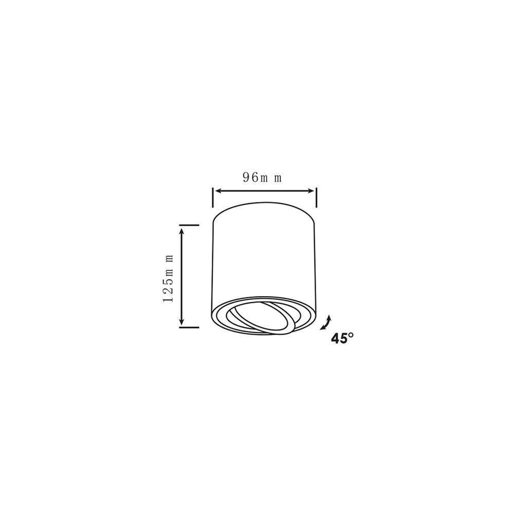 Луна за външен монтаж LVT 0133 - бяло цилиндрично осветително тяло за повърхностен монтаж на таван с интегрирана фасунга GU10. Луна за таван от висококачествен прахово боядисан алуминий в цвят бял мат. Подвижно осветително тяло с регулируем ъгъл на светене. Бяла луна за повърхностен монтаж LVT 0133 е лесна инсталиране и е с лесна смяна на LED крушката.