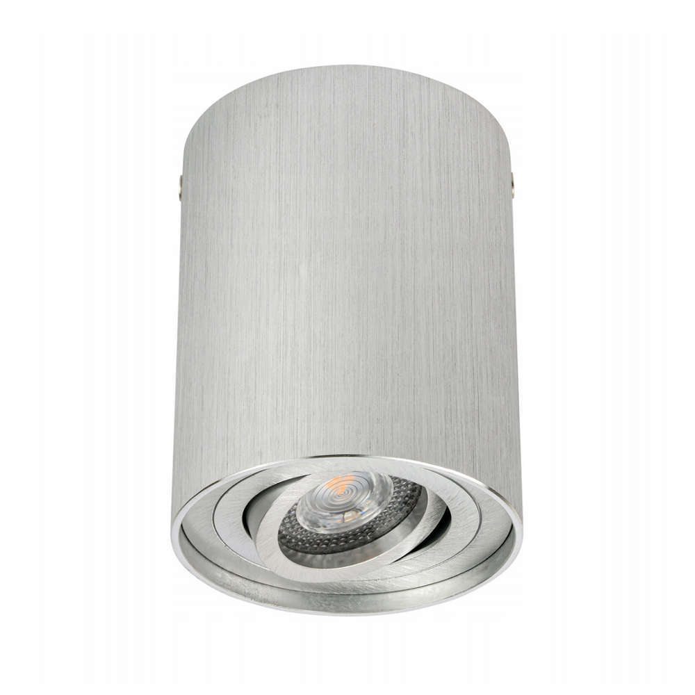 Цилиндрична луна за повърхностен монтаж ф93x125mm, фасунга GU10, IP20, алуминиев корпус с насочване, драскан алуминий, без осветителен източник в комплекта