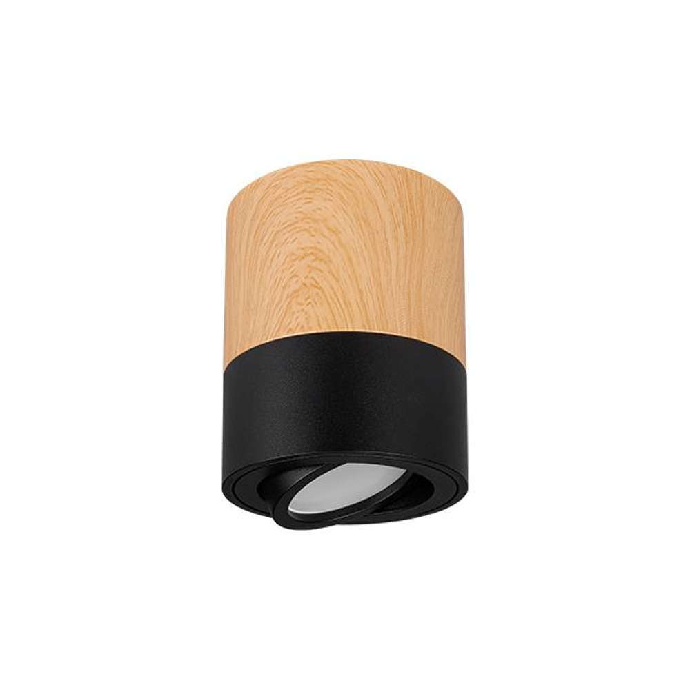 Осветително тяло за повърхностен монтаж с фасунга GU10, цилиндър, алуминий, цвят бял дъб и черно