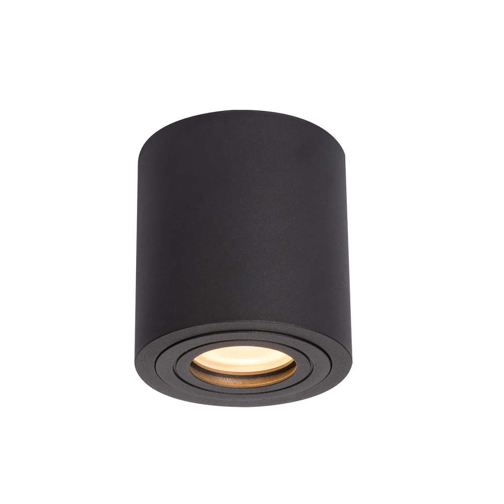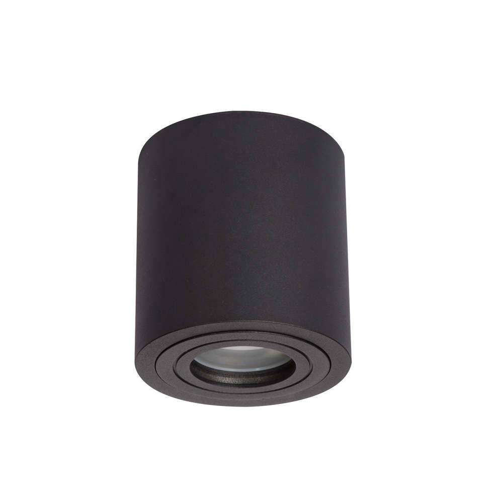 Луна за външен монтаж LVT 9579, алуминий и стъкло, GU10, без крушка, IP54, черен мат. Цилиндрично тяло за стилно и надеждно външно осветление.